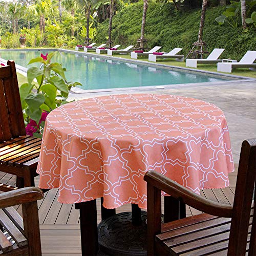 >> AooHome 70 Inch Round Tablecloth, Polyester Spill-Proof Water Repellent Geometric Quatrefoil Table Cloth for Holiday Par